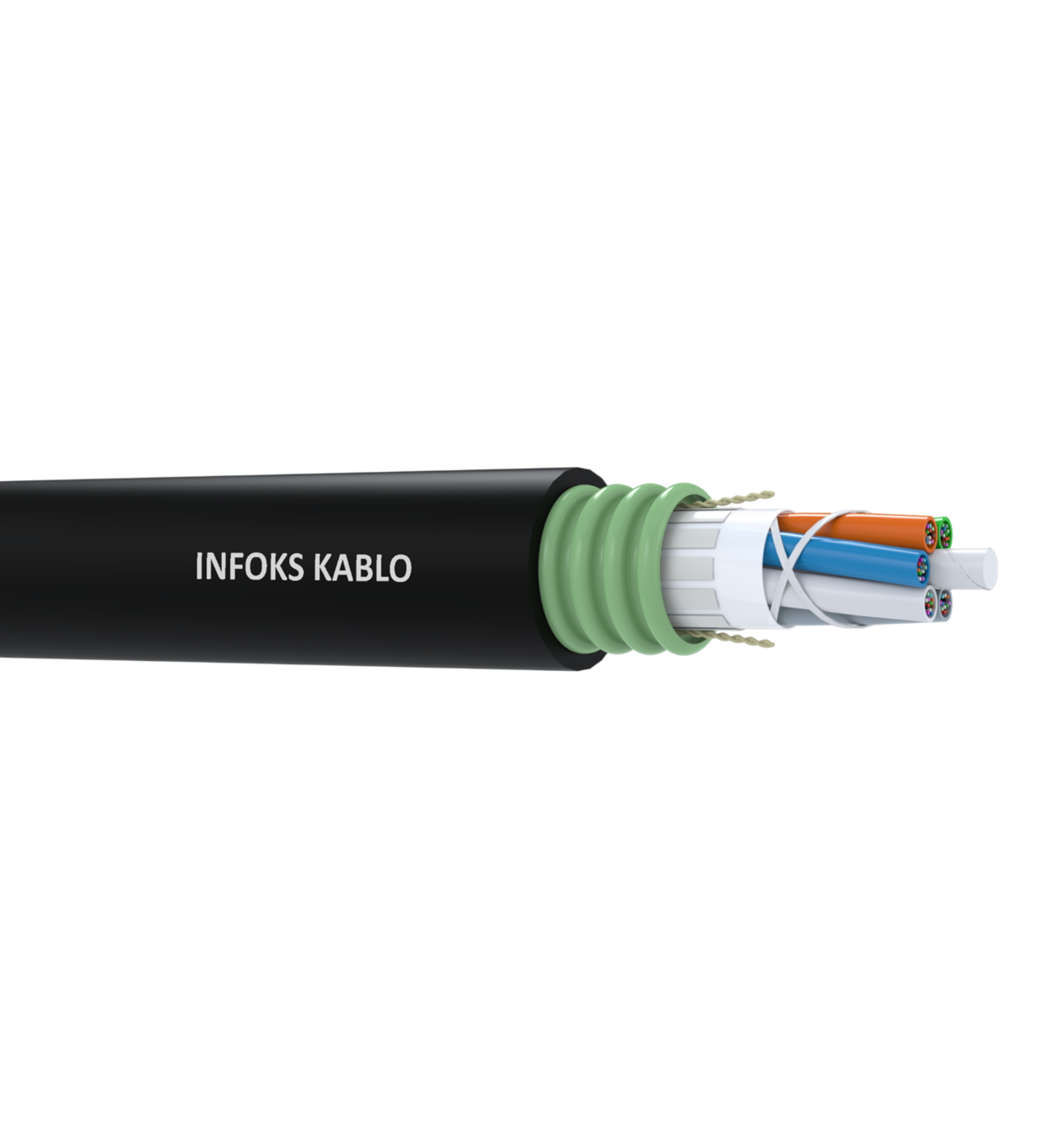 The cable’s structural backbone incorporates non-metallic strength members combined with a rodent-resistant armor system, creating a secure protective envelope for the stranded tubes. The dual-layer protective configuration shields the cable from mechanical impacts, crush forces and rodent intrusion, making it highly suitable for direct burial and underground duct networks. A UV-stabilized polyethylene outer sheath adds further environmental protection, allowing the cable to operate reliably in diverse soil conditions, industrial corridors and terrestrial long-haul routes.